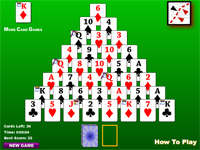 Solitaire Tower is a solitaire game in which the player attemts to move all the cards from a pyramid of cards to the foundation below by moving the lowest row of cards if it's value is one greater than or one less than the value of the current card in the foundation.